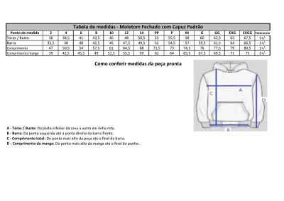 | Tamanho | 02, 04, 06, 08, 10, 12, 14, EXG, EXGG, G, GG, M, P, PP |