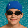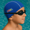 TOUCA DE NATAÇÃO AZUL ROYAL 2 FRISO BRANCO LOGO BORDADO SOMENTE IDEAL